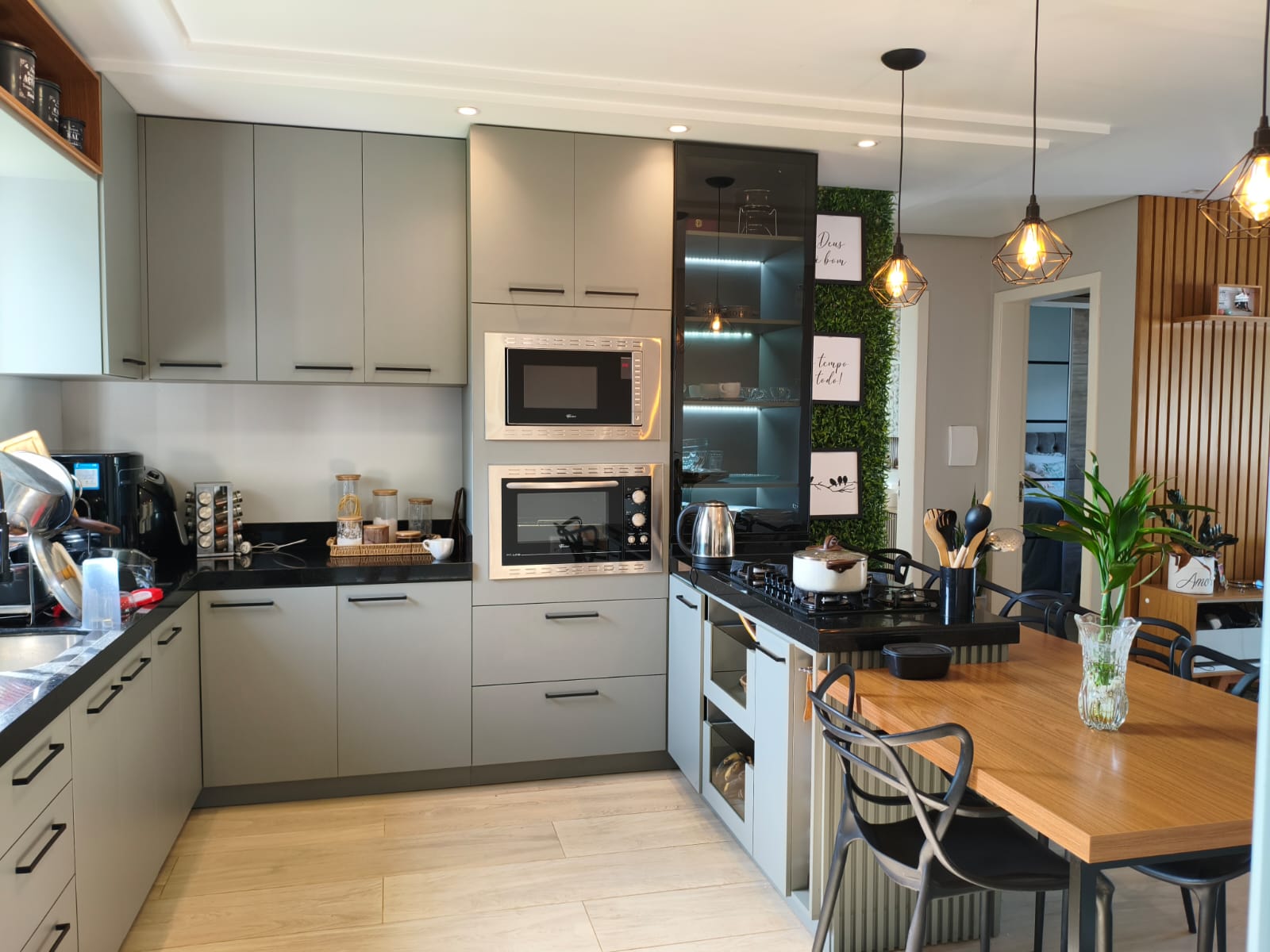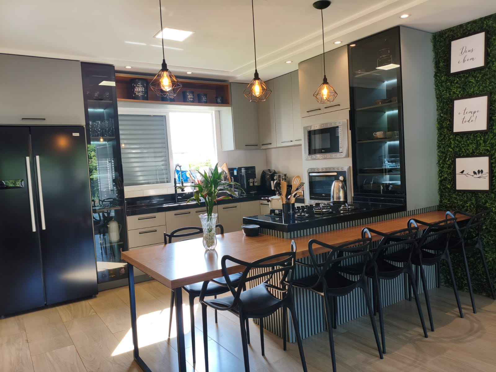Sala de estar e jantar integradas;
